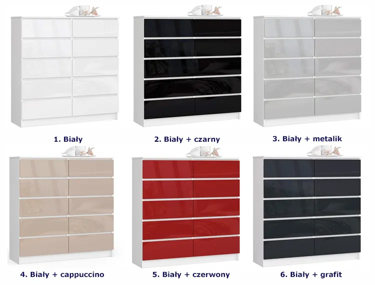 - Dziesięć pojemnych szuflad do przechowywania.