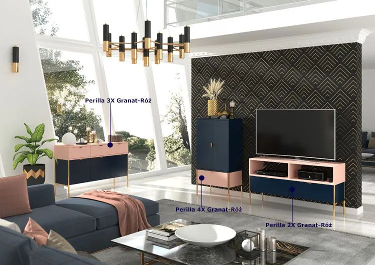 Wnętrze w stylu glamour to przestrzeń, w której króluje luksus i elegancja. Często styl ten kojarzony jest z przesadnym przepychem, jednak nasza nowa kolekcja ukazuje go w zupełnie innej, nowej odsłonie. Połączenie zdecydowanej kolorystyki i subtelnego złota, a wszystko to oplecione minimalizmem - oto nasza nowa kolekcja Perilla. Głęboki, szlachetny odcień granatu spleciony z subtelnym różem oraz eleganckim połyskującym złotem tworzy doskonałą całość wzbudzającą niesamowite emocje. Perilla charakteryzuje się niezwykle prostą formą o zdecydowanym charakterze i jest doskonałym przedstawicielem stylu glamour. Tworzy we wnętrzu wyjątkowy nastrój pełen gracji i niepowtarzalnego wdzięku. Kolekcja ta doskonale odnajdzie się nie tylko w stylu glamour, ale także minimalistycznym lub nowoczesnym. Jest świetnym rozwiązaniem do stworzenia designerskiej aranżacji zarówno w zaciszu domowym, jak i komercyjnych wnętrz hotelowych lub biurowych. Daj się ponieść wyobraźni i stwórz z tą niezwykle elegancką kolekcją aranżację zapierającą dech w piersiach!