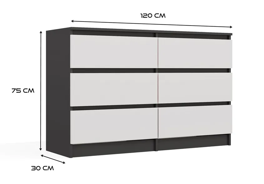 Komoda na ubrania antracyt + biały - Berta 120 cm