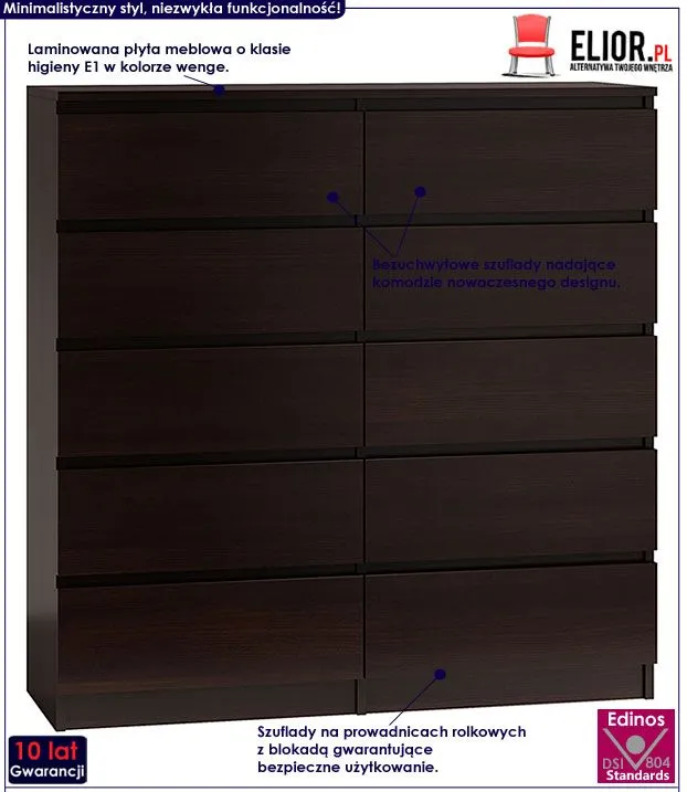 Stojąca komoda z 10 szufladami Noel