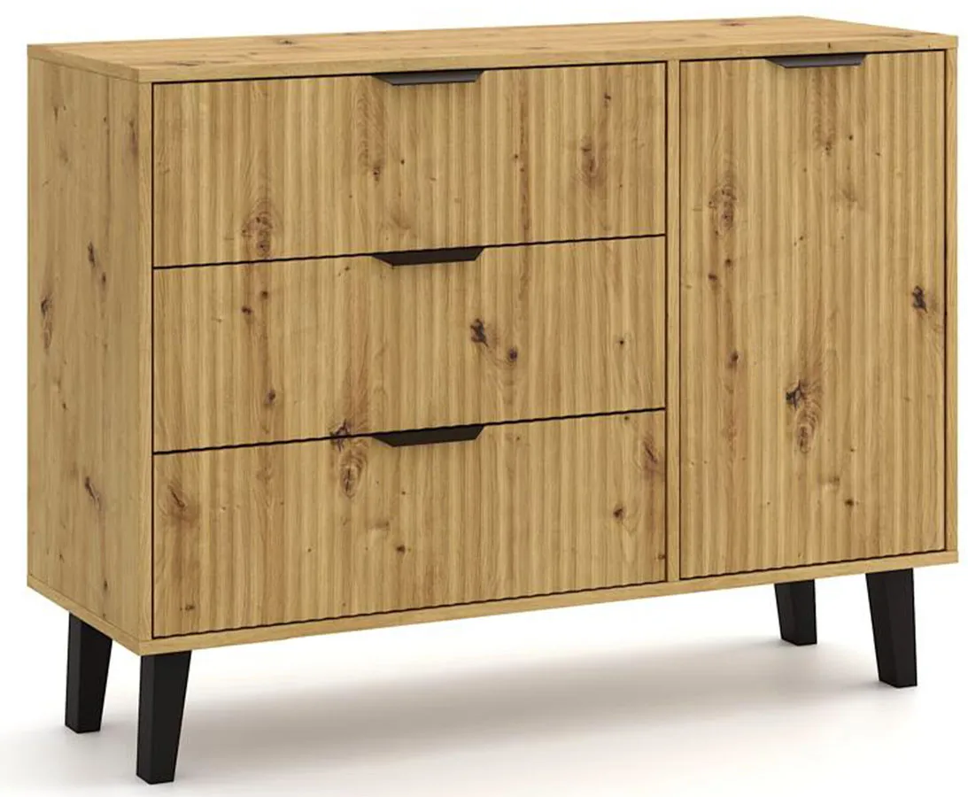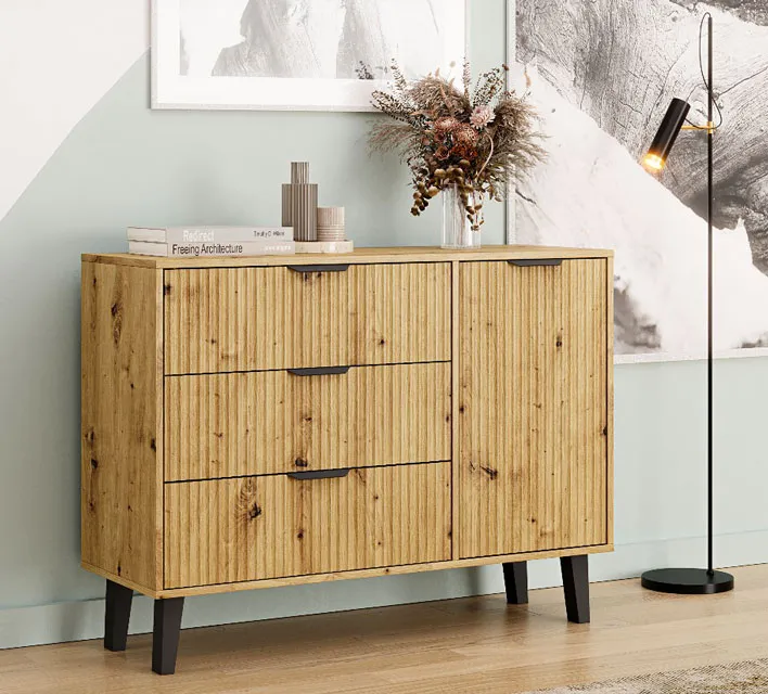 Dotyczy: Duża komoda z 3 szufladami i szafką kaszmir + dąb artisan - Leoniz 6X