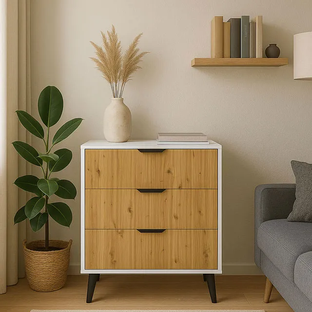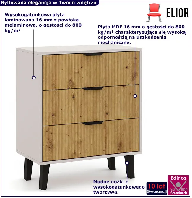 Dotyczy: Ryflowana komoda z 3 szufladami dąb artisan - Leoniz 4X