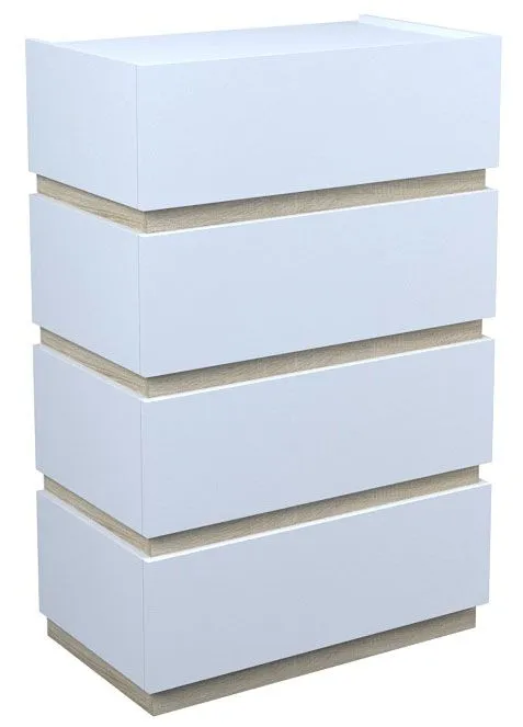 - Kolor: Fronty mebla w kolorze białym, listy środkowe - dąb sonoma. Kliknij w link i sprawdź także inne białe komody w sklepie Edinos.pl. Stwórz swój praktyczny zestaw mebli.