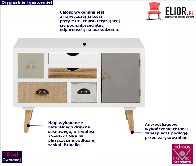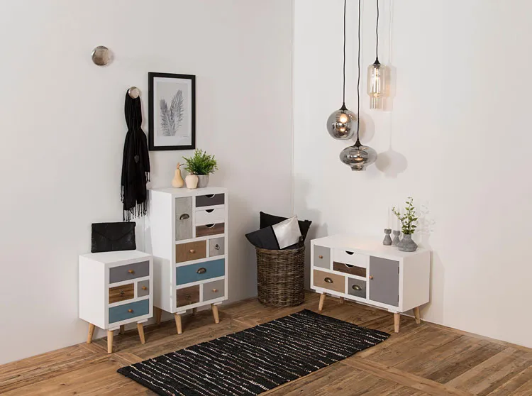 - Modna kolorystyka: biały z kolorowymi frontami. Kliknij w link i sprawdź także inne komody skandynawskie w sklepie Edinos.pl. Stwórz swój praktyczny zestaw mebli.