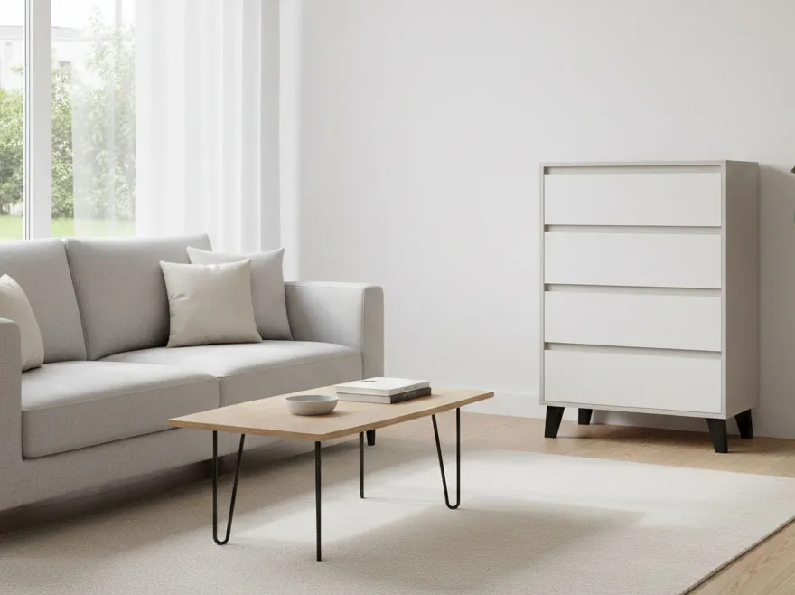 Dotyczy: Biała komoda na nóżkach z 4 szufladami - Bilgo 5X
