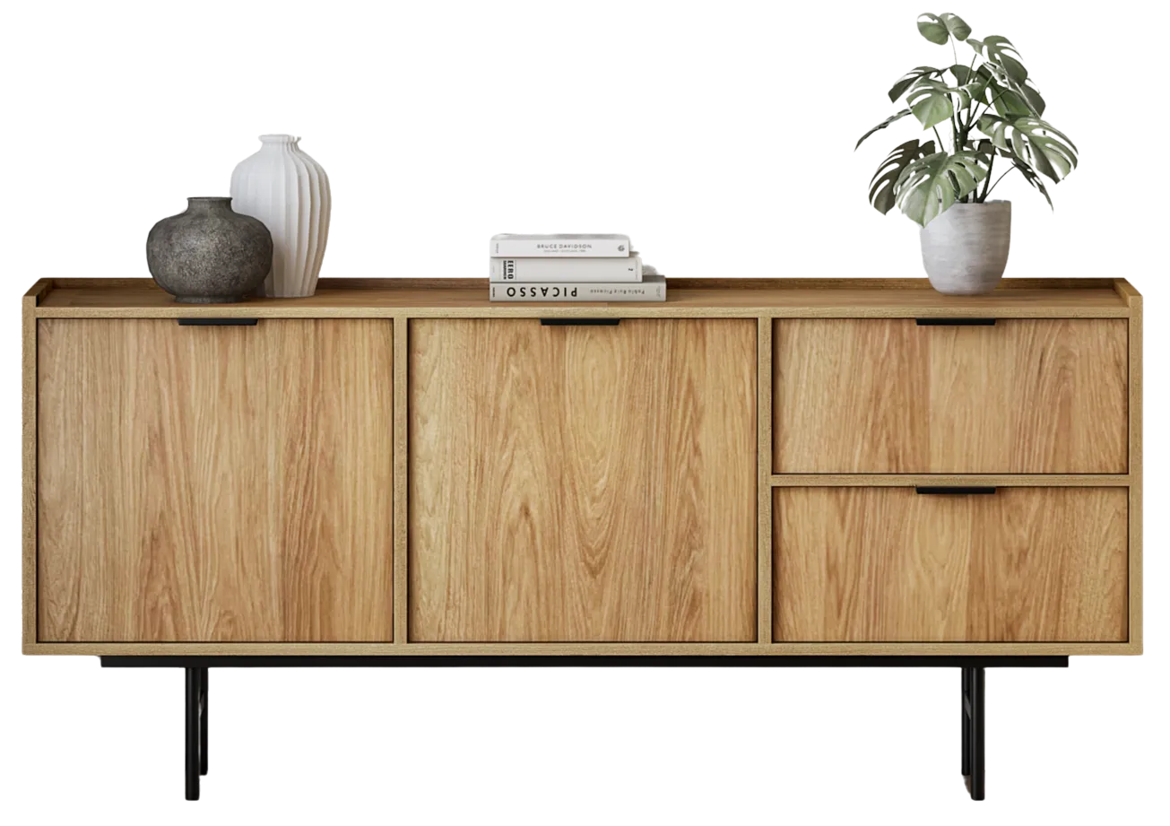 Komoda z 2 szufladami i szafką hikora naturalna - Herioz 5X