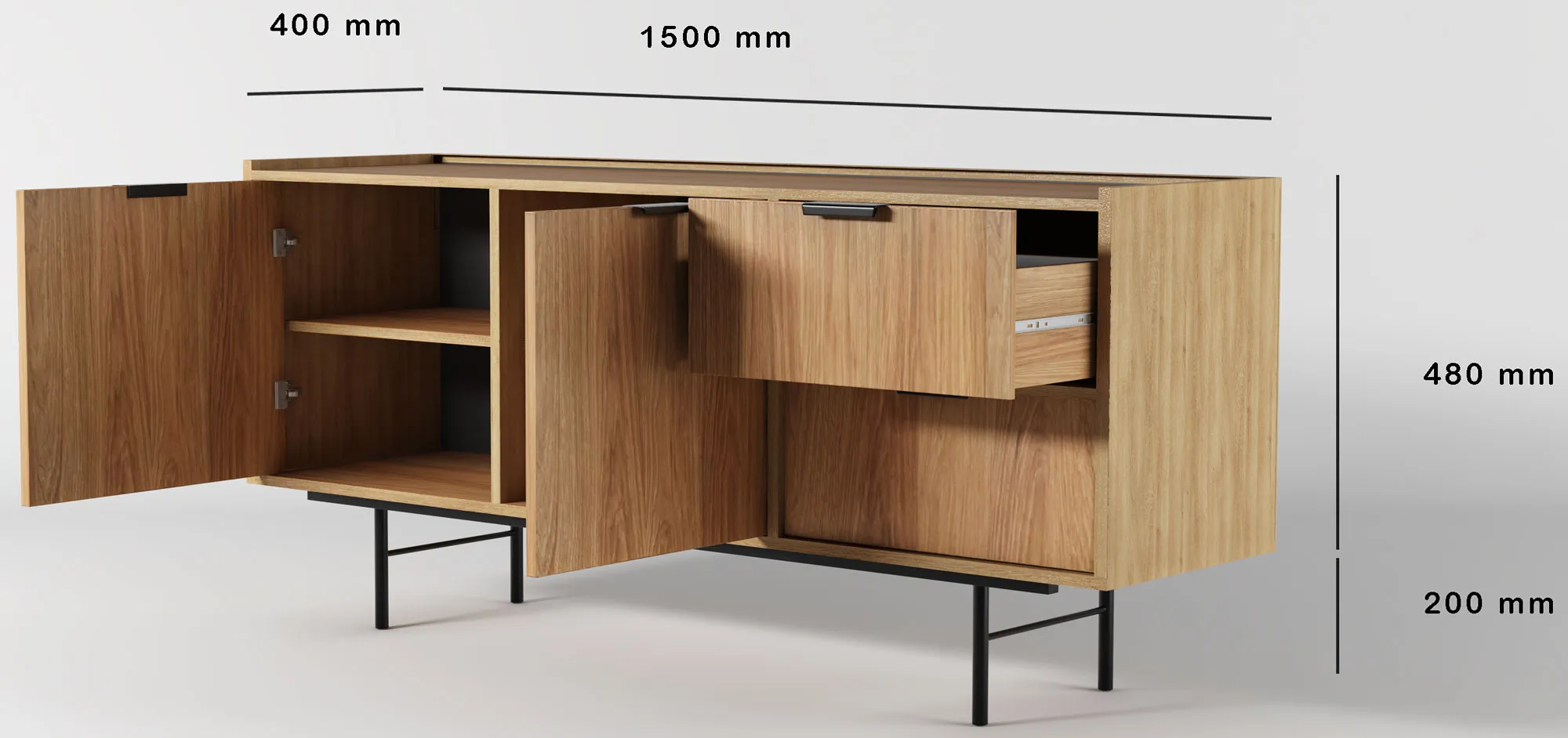 Komoda z szafką i 2 szufladami Herioz 5X hikora naturalna