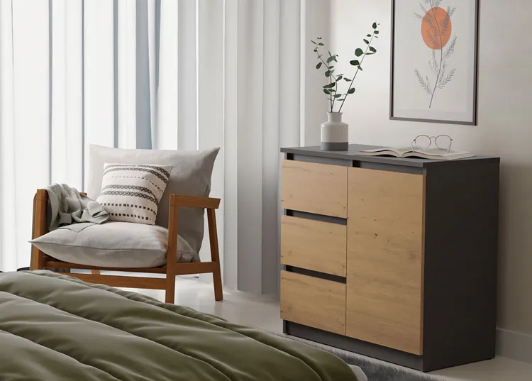 Dotyczy: Nowoczesna komoda z szufladami antracyt + dąb artisan - Promesos 3X