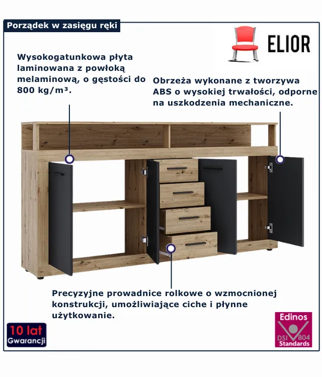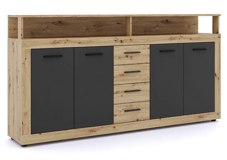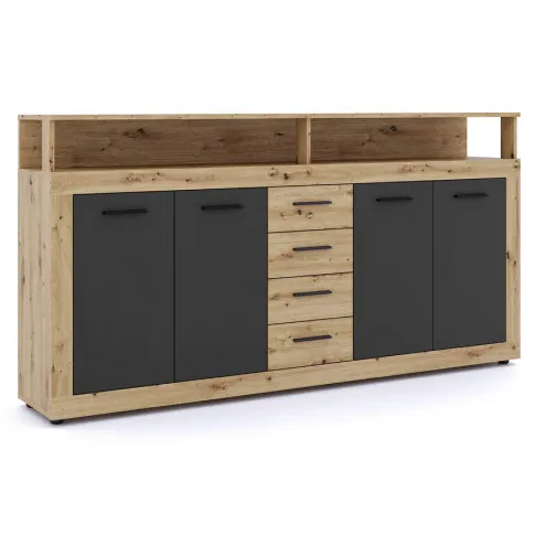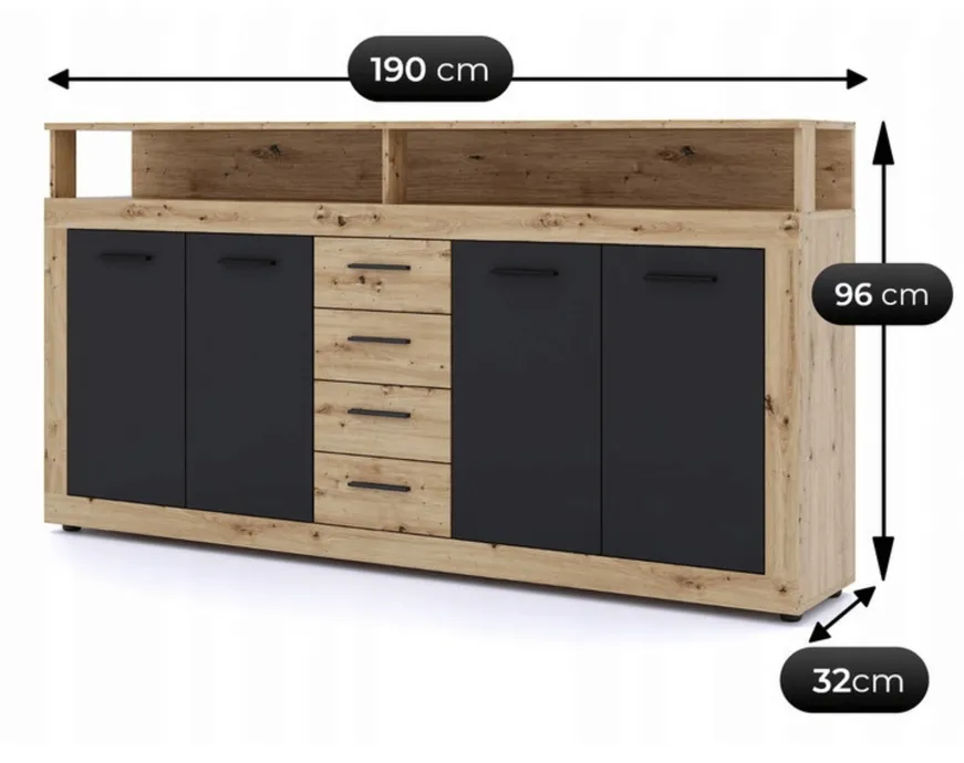 Komoda z 4 szufladami dąb artisan + czarny 190cm - Dofo
