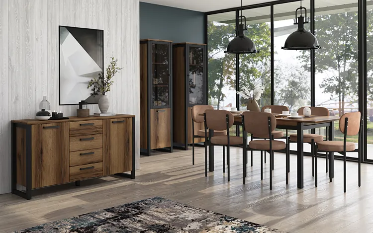 Kolekcja mebli Holton od Edinos Premium to wyrazisty mariaż nowoczesnej elegancji z klasycznym urokiem. Proste formy w szlachetnym kolorze dębu delano zestawionym z głębią czarnych detali sprawia, że każdy mebel jest nie tylko praktycznym elementem wyposażenia, ale również wyrafinowaną dekoracją przestrzeni. Przemyślne rozwiązania aranżacyjne kolekcji Holton idealnie wpisują się zarówno w przestronne salony, jak i w eleganckie jadalnie, nadając im wyjątkowy charakter. Holton - deklaracja nowoczesnego stylu!
