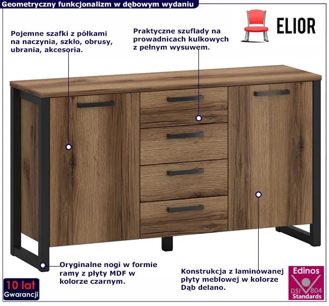 • Kolor: Dąb delano ciemny. Kliknij w link i sprawdź także inne komody do salonu w sklepie Edinos.pl.
