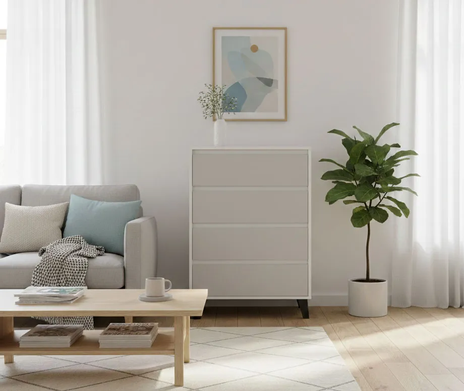 Aranżacja z komoda z 4 szufladami Bilgo 5X biały + kaszmir