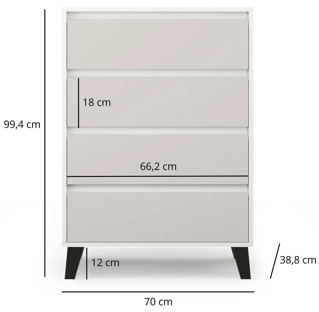 Komoda z 4 szufladami na czarnych nóżkach biały + kaszmir - Bilgo 5X