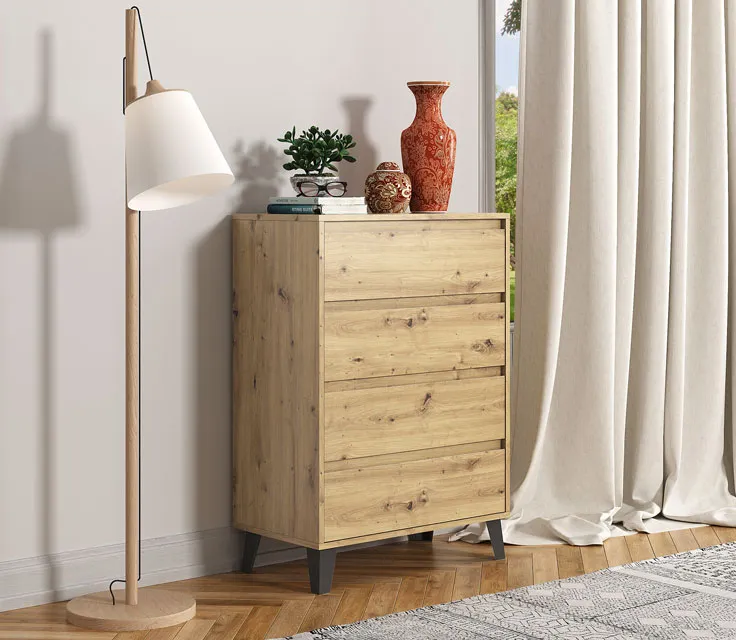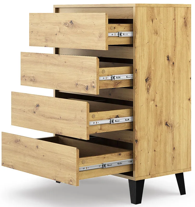 Komoda z 4 szufladami na nóżkach dąb artisan - Hallor 5X