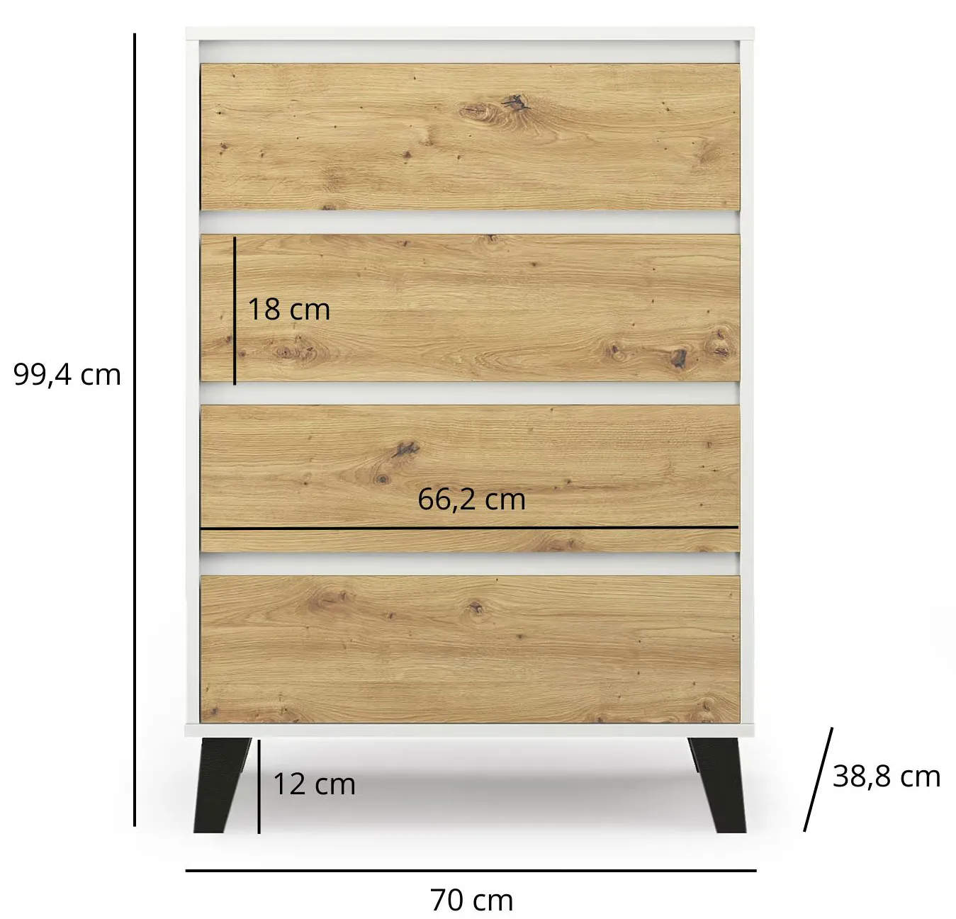 Dotyczy: Biała komoda na nóżkach z 4 szufladami - Bilgo 5X