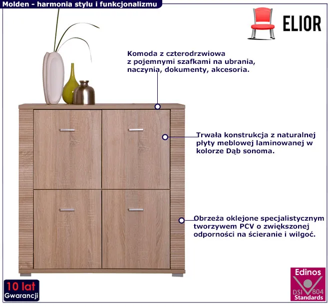 • Kolor: Dąb sonoma. Kliknij w link i sprawdź także inne komody dąb sonoma w sklepie Edinos.pl.