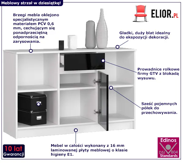 Dotyczy: Biała komoda w połysku z szufladą - Bereno 4X