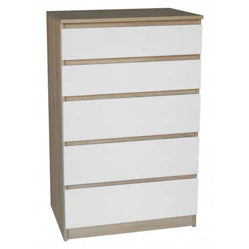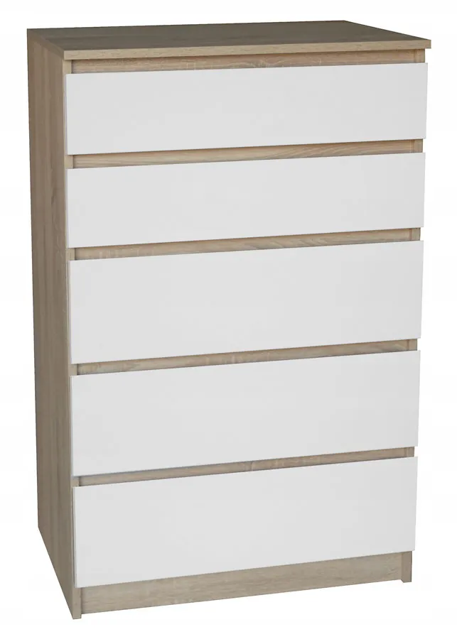 Komoda jest bardzo funkcjonalnym meblem, potrzebnym niemal w każdym pomieszczeniu. Co w niej przetrzymujemy? Tak naprawdę wszystko. Od dokumentów, zdjęć, kosmetyków, świeczek, poprzez śrubokręty, lekarstwa, aż po bieliznę, okulary, ładowarki czy słodycze. Lista ta nie ma końca. I właśnie to jest niesamowite, że jeden mebel pozwala nam na tak nieograniczone możliwości. Tak szerokie perspektywy zapewni Ci praktyczna komoda Vinter 3X. To zgrabna szafka, posiadająca aż 5 szuflad. Dzięki nim posegregujesz swoje rzeczy i ułożysz je według swoich zasad. Od tej pory zawsze będą w jednym miejscu, dostępne na wyciagnięcie ręki. Schowasz swoje wszystkie skarby, a nawet "ukryjesz" je przed całym światem. Aby użytkowanie komody było dla Ciebie jak najbardziej komfortowe, szuflady zostały zaopatrzone w prowadnice rolkowe. Dzięki nim ich wysuwanie jest bardzo lekkie i płynne. Poza tym komoda charakteryzuje się prostym i estetycznym designem, więc doskonale wkomponuje się w nowoczesne, minimalistyczne i skandynawskie wnętrza.
