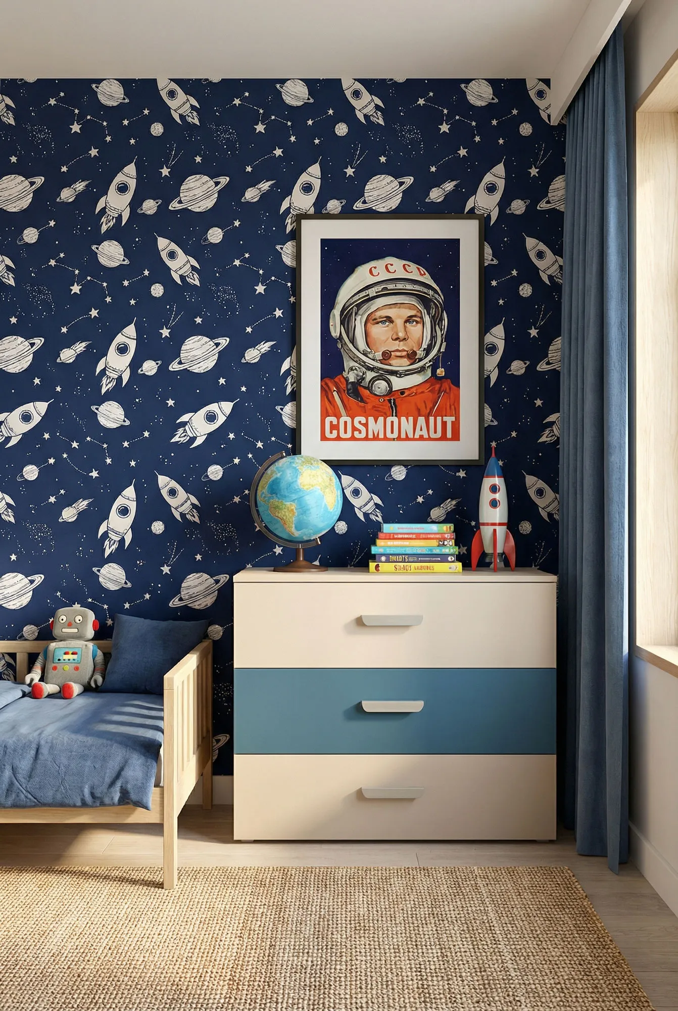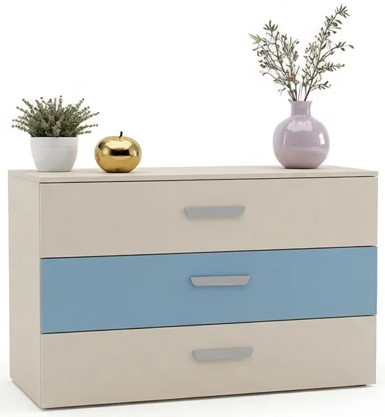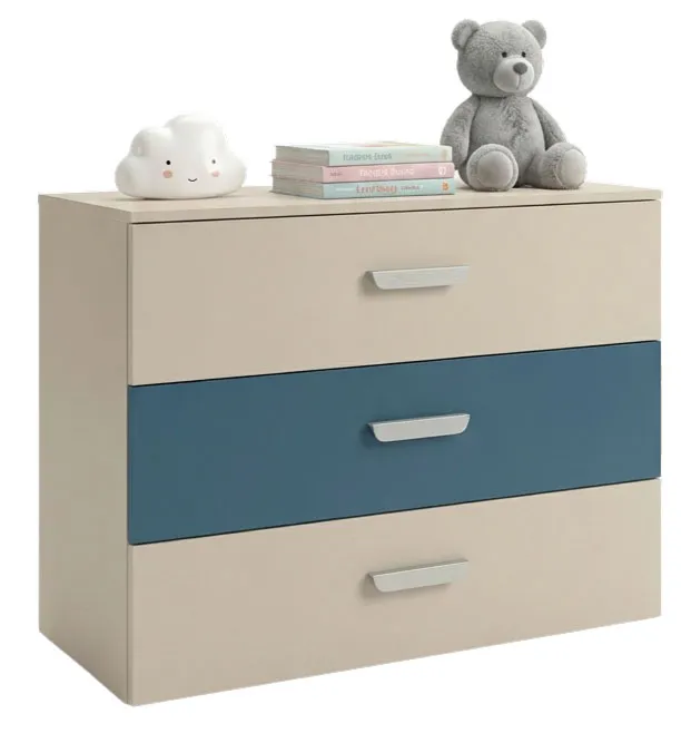 Pokój dziecka z komodą z 3 szufladami Zimi 4X kaszmir + niebieski