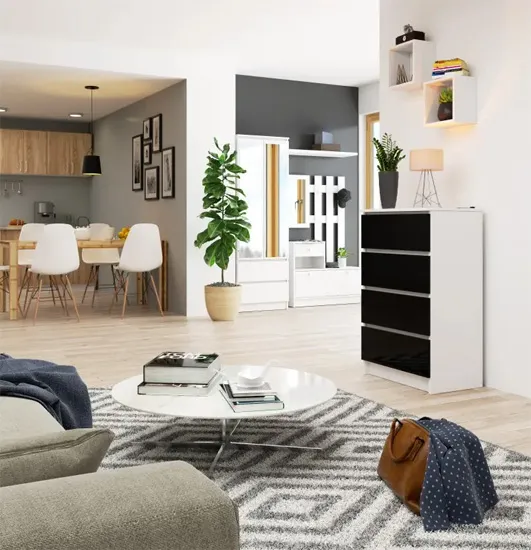 Poniżej przedstawiamy przykładową wizualizację wnętrza z wykorzystaniem komody Branni 4X marki Edinos Premium: