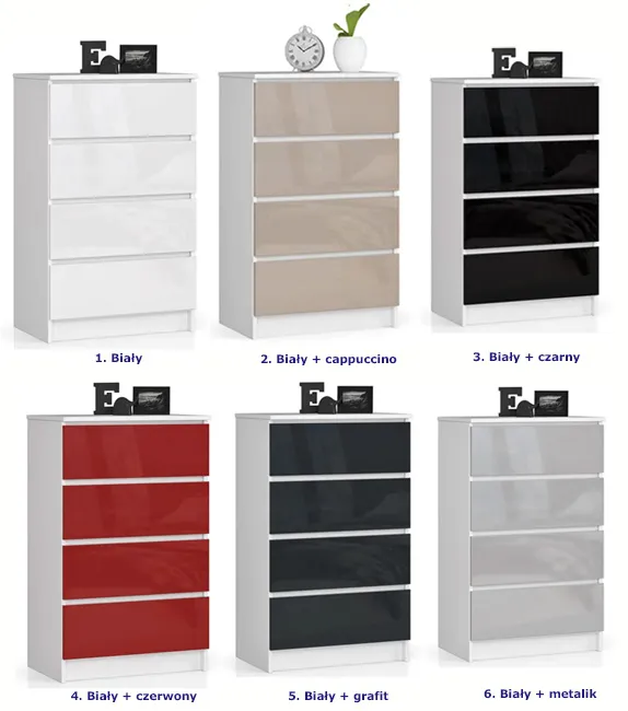 Poniżej przedstawiamy wszystkie kolory komody Branni 4X marki Edinos Premium. Kliknij tutaj i wybierz tę, która najbardziej pasuje do wnętrza Twojego domu!
