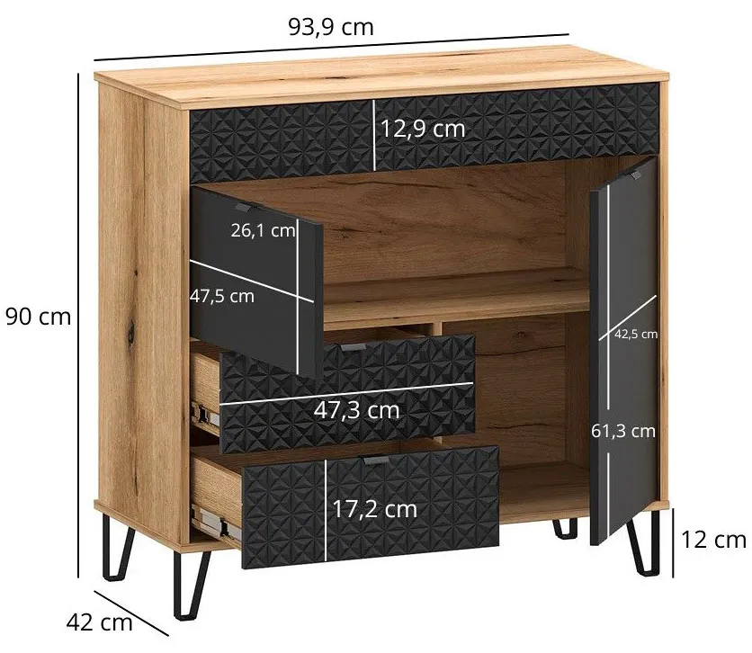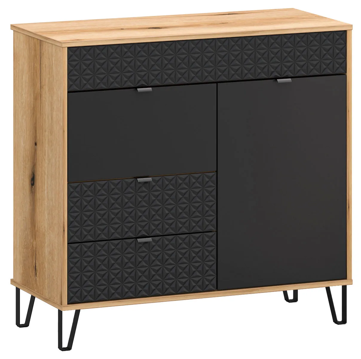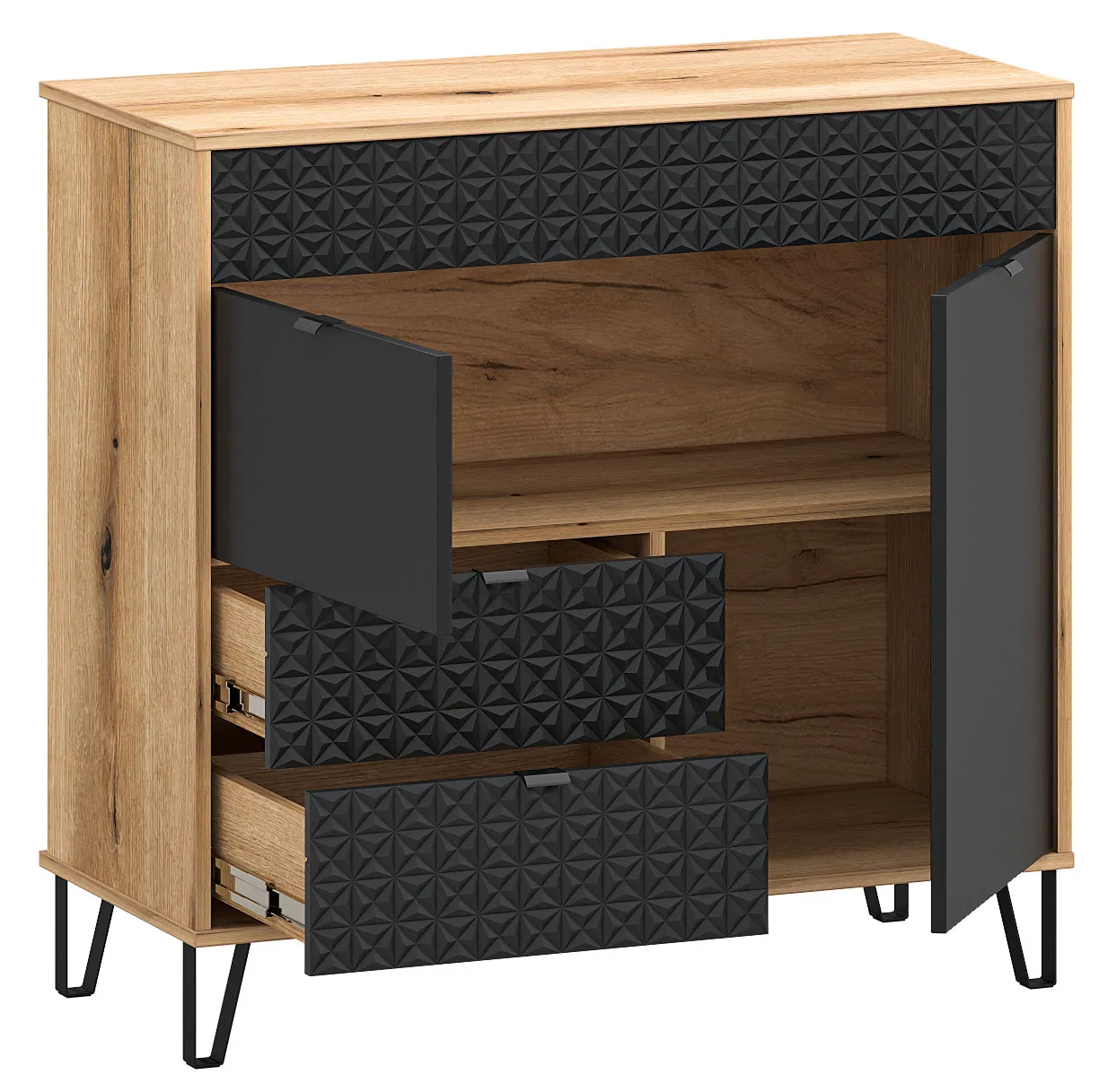 Komoda z szufladami na nóżkach dąb evok + czarny - Eccio 3X