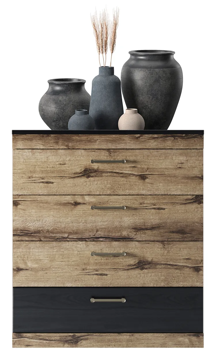 Fiordes to wyjątkowa kolekcja marki Elior zaprojektowana z myślą o tych, którzy cenią sobie nie tylko funkcjonalność, ale i unikalny design. Klasyczna elegancja dębu monastery łączy się z nowoczesnymi czarnymi akcentami, tworząc linię mebli, która wnosi do wnętrza ciepłą rustykalną aurę przyprawioną szczyptą ezgotyki. Fiordes wyróżnia się szeroką gamą mebli, służących do aranżacji salonu, sypialni, pokoju młodzieżowego lub gabinetu pozwalając wykreować komfortową i unikalną przestrzeń. Poznaj kolejny model z tej zjawiskowej kolekcji - komodę z szufladami Oxion 4X!