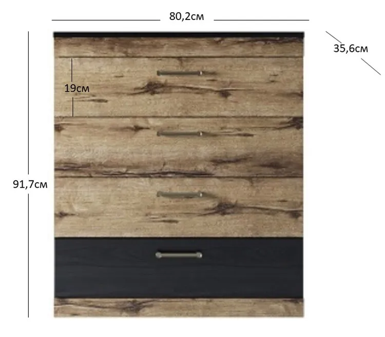 - Korpus: Laminowana płyta meblowa w kolorze dębu monastery z czarnymi wstawkami.