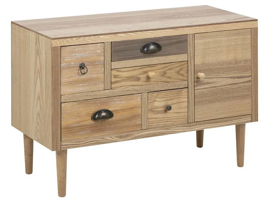 Cała kolekcja Timbo została stworzona poprzez inspirację przyrodą i naturą. Każdy element mebla charakteryzuje się barwami pochodzącymi z środowiska roślinnego - a dokładniej jest odzwierciedleniem naturalnego drewna jesionowego. Specyfiką jesionu jest jego rozmaite ubarwienie, które zostało zaprezentowane dzięki szufladom, które nieco różnią się od siebie odcieniem. Takie zalety komody pozwolą Ci na dopasowanie jej do wnętrz zaaranżowanych w stylu skandynawskim, nowoczesnym i klasycznym. Meble są bardzo ważne we wnętrzu każdego domu. Pozwalają stworzyć przyjemną atmosferę wypełniając pustą przestrzeń, a także sprawiają, że organizacja domowej powierzchni staje się o wiele łatwiejsza. Liczna ilość szuflad o różnych rozmiarach to możliwość znalezienia odpowiedniego miejsca na ubrania, dokumenty lub drobiazgi w każdym rozmiarze. Dzięki tak ustrukturalizowanemu przechowywaniu swoich rzeczy zawsze znajdziesz to czego szukasz! Ustawiając mebel w sypialni, salonie czy przedpokoju wprowadzisz nie tylko porządek i ład, ale również stworzysz praktyczną dekorację pomieszczenia.