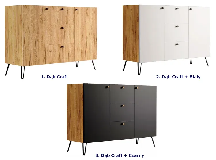 Dotyczy: Industrialna komoda na nóżkach dąb craft - Zorina 3X
