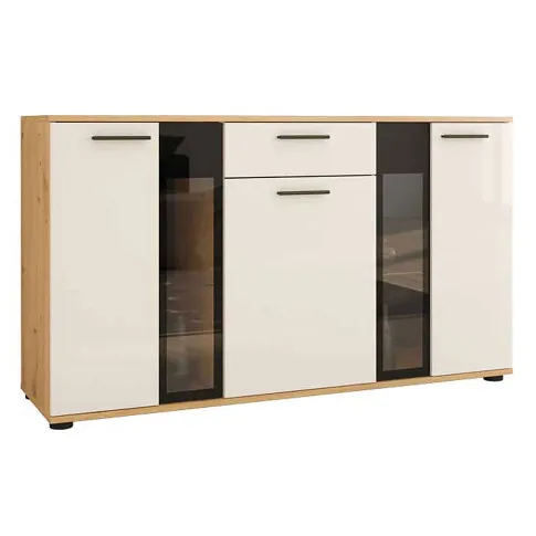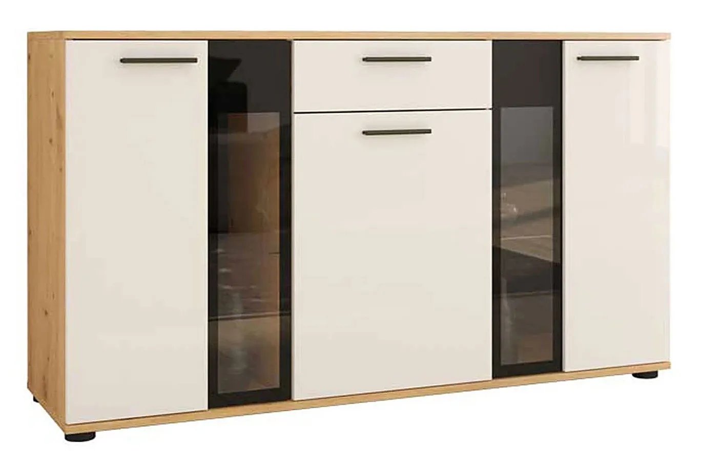 Komoda ze szkłem w kolorze dąb artisan + biały - Melorix