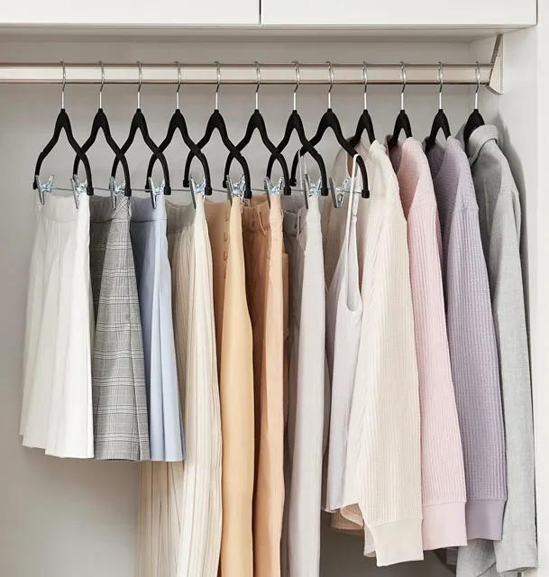 • Wszechstronność użycia: klamerki z regulacją odległości idealnie nadają się do zawieszania zarówno spodni, jak i spódnic.