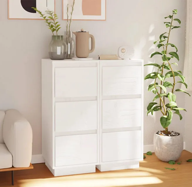 Komplet 2 białych komód z drewna sosnowego - Lors 4X