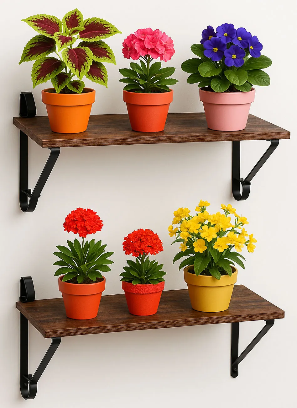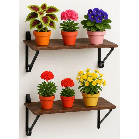 Drewno ma przyjemny kolor. Utrzymują ciężar doniczek bez problemu. Dobrze się prezentują na białej ścianie.