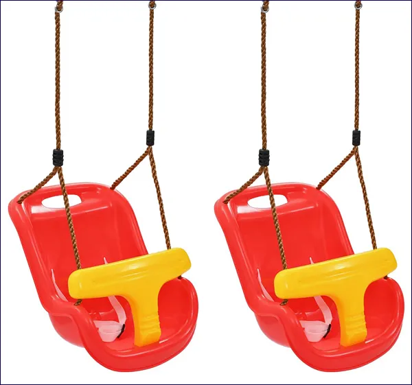 - Zawartość przesyłki: 2 x huśtawka kubełkowa z pałąkiem, pasem bezpieczeństwa i liną polietylenową. Długość liny jest regulowana za pomocą haczyków.