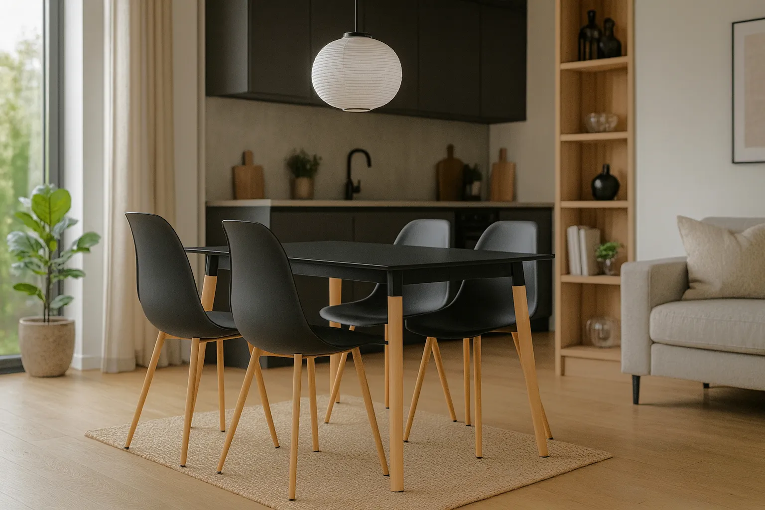• Ponadczasowy design – prosta forma stołu w duecie z lekkimi krzesłami sprawia, że zestaw pasuje do kuchni, jadalni i salonu.
