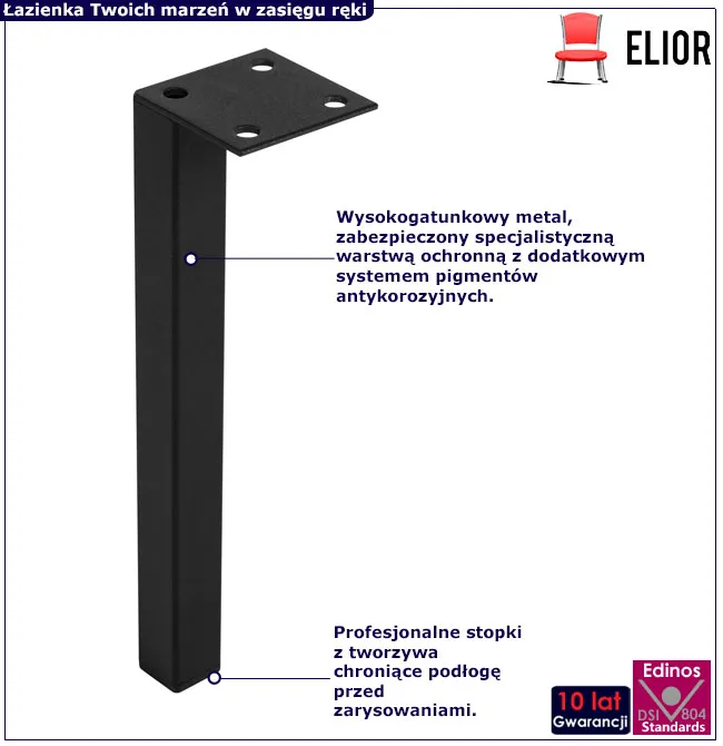 - Profesjonalne zakończenia nóżek z wysokogatunkowego tworzywa chroniące podłogę przed zarysowaniem.