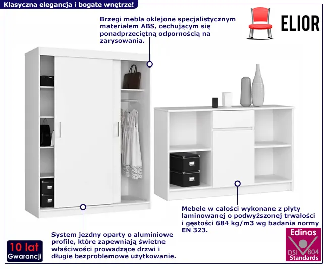 - Kolor: biały mat. Kliknij w link i sprawdź także inne komplety komody i szafy w sklepie Edinos.pl. Stwórz swój praktyczny zestaw mebli.