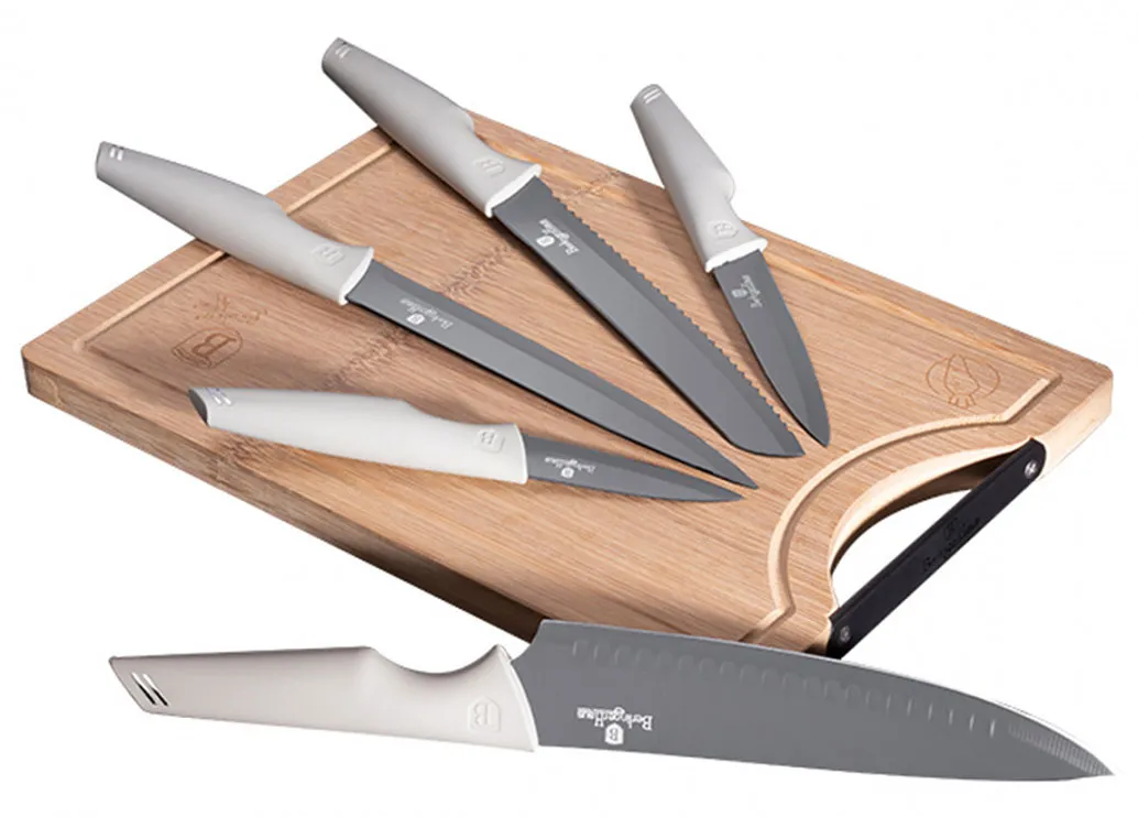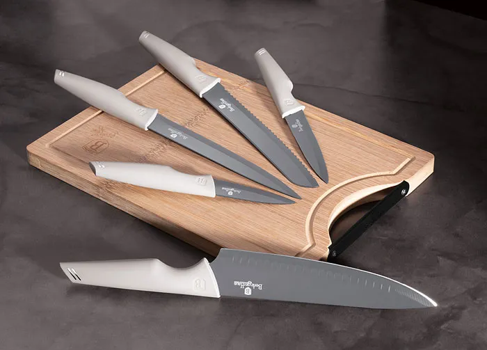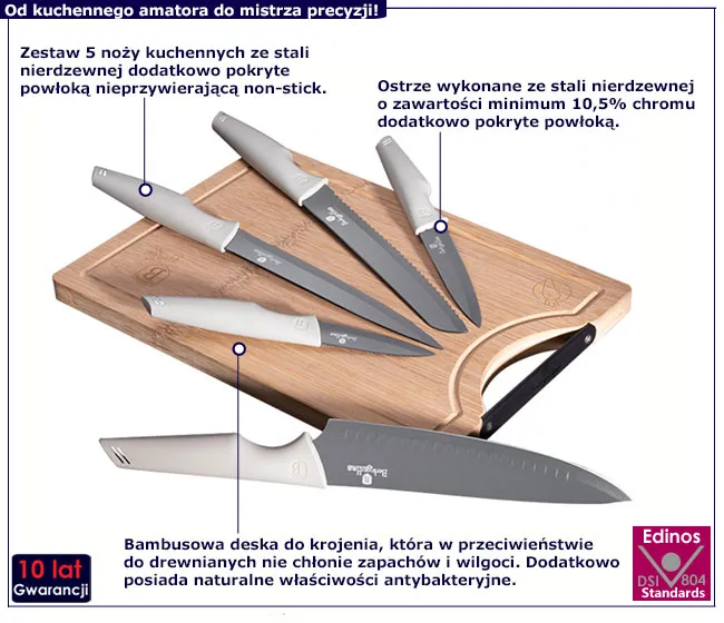 Dotyczy: Elegancji zestaw noży stalowych z deską różowe złoto - Prado 3X