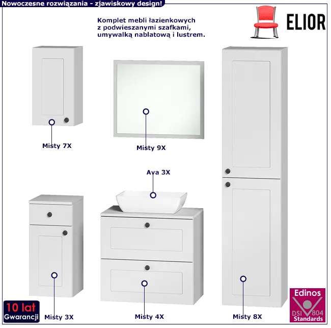Zestaw Zipro 6S możesz uzupełnić o dowolnie wybrane elementy z serii Misty marki Elior. Klinij link wybierz dodatkowe szafki i zaprojektuj swoją wymarzoną łazienkę już teraz!