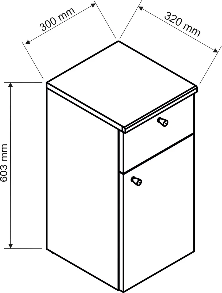 - Misty 3X: wysokość: 60,3 cm, szerokość: 30 cm, głębokość bez blatu: 31,9, głębokość z blatem: 32 cm.