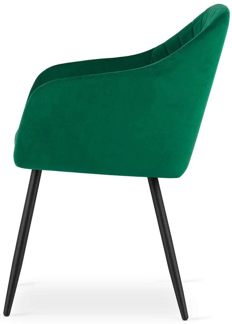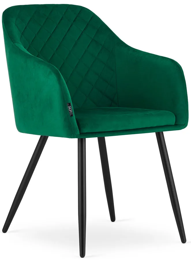 Elegancki zestaw 2 pluszowych krzeseł Glar to idealny wybór nie tylko do Twojej jadalni. Komplet ten świetnie sprawdzi się też w salonie, sypialni czy gabinecie. Nieziemski w dotyku aksamit ozdobiono delikatnym pikowaniem, które nadaje meblowi niezwykłego charakteru. Każde z krzeseł wyposażono w wygodne ergonomiczne oparcie i podłokietniki tak, by zapewnić Ci najwyższy komfort siedzenia. Mocne metalowe nogi w eleganckim kolorze czarnym zniosą obciążenie aż 120 kg. Pozwól sobie na odrobinę luksusu z tym unikatowym nowoczesnym zestawem welurowych krzeseł Glar marki Edinos Premium.