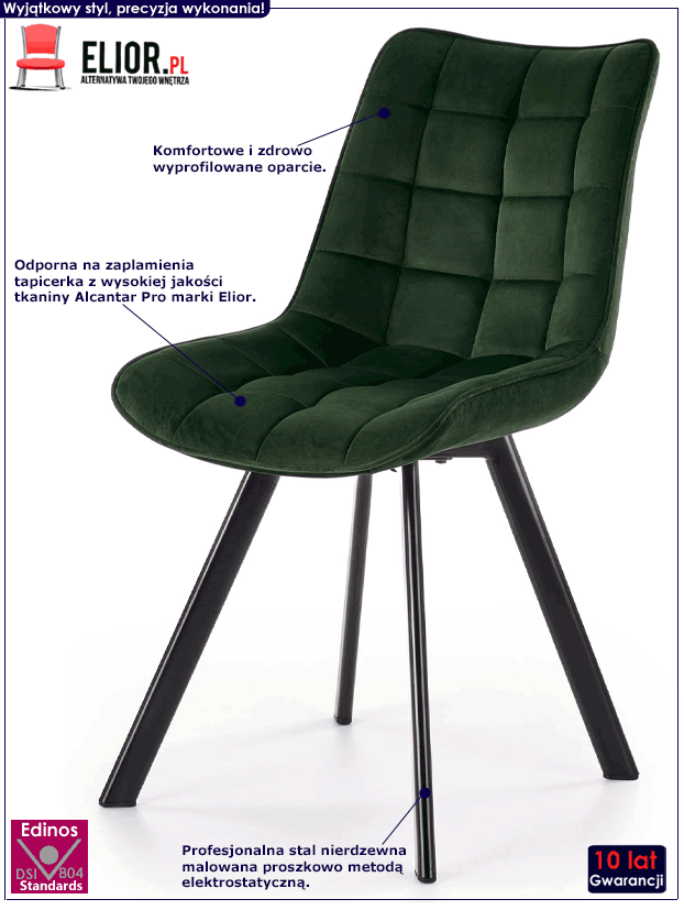 - Kolor: ciemny zielony. Kliknij w link i sprawdź także inne zielone krzesła w sklepie Edinos.pl. Stwórz swój praktyczny zestaw mebli.