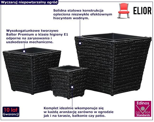 Dotyczy: Komplet 3 brązowych donic z hiacyntu wodnego - Heron