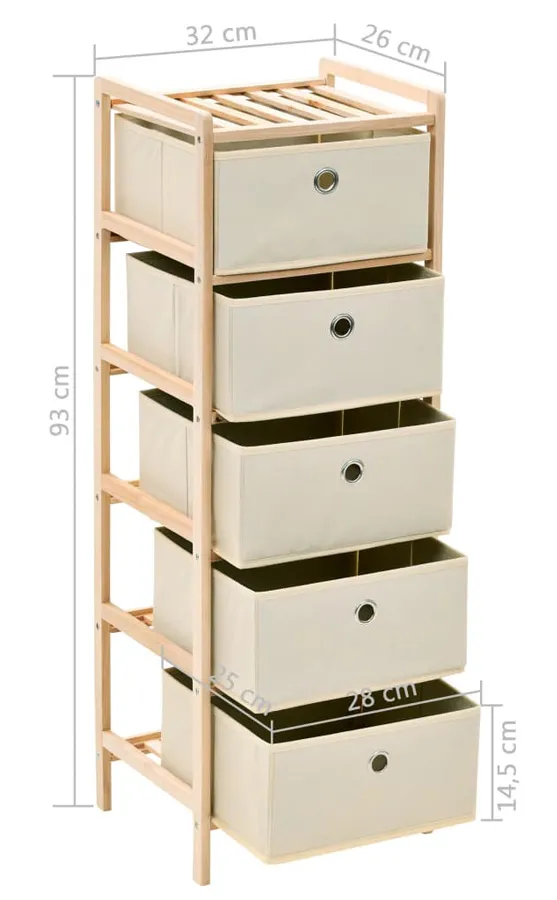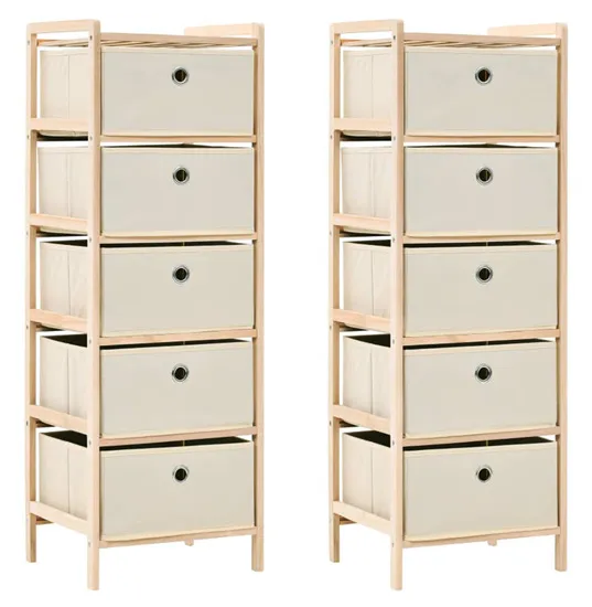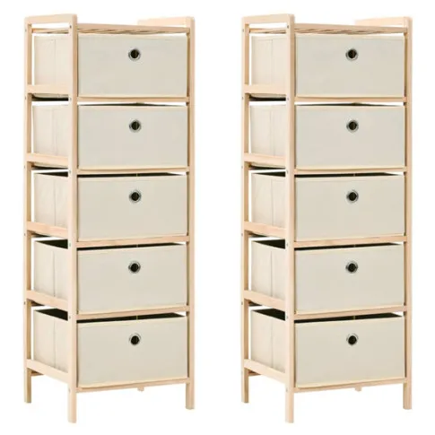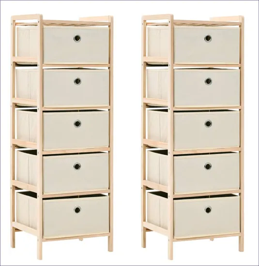 Komplet drewnianych regałów z 5 koszami z tkaniny - Galius 6X