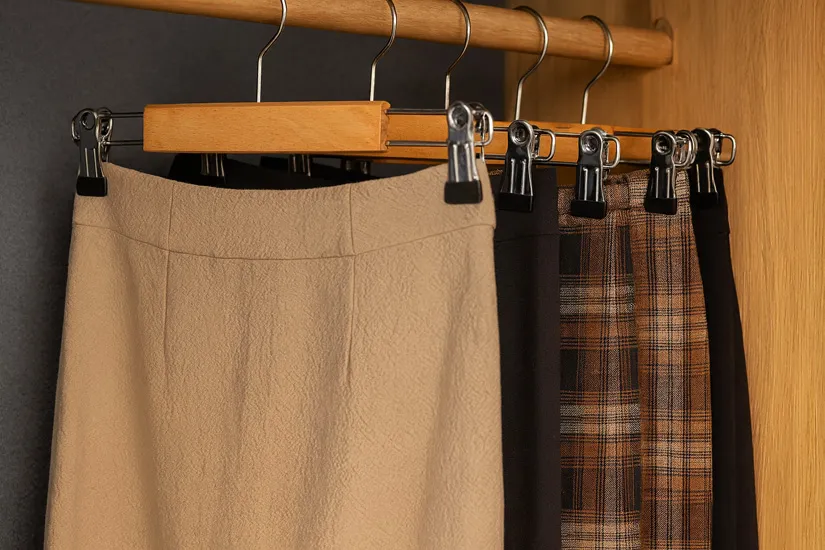 Dotyczy: Czarny drewniany komplet wieszaków z klipsem 2 sztuki - Clad 4X