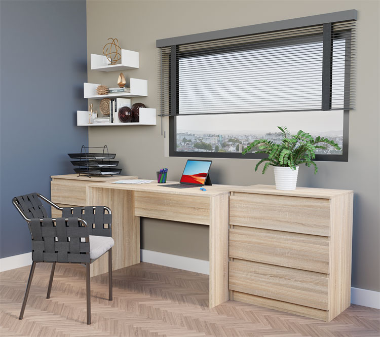 Ciągły bałagan na biurku sprawia, że nie możesz skupić się na pracy? Często nie masz nawet gdzie postawić kubka z kawą, bo wszystkie dokumenty potrzebne w zasięgu Twojej ręki zasłaniają blat? Marka Edinos Premium ma na to doskonałe rozwiązanie. Zestaw mebli biurowych Deso to biurko oraz komoda, dzięki którym utrzymasz doskonały porządek, a Twoje dokumenty ułożone w szufladzie niczym w bibliotece zapewnią Ci doskonały dostęp do najważniejszych informacji w mgnieniu oka!