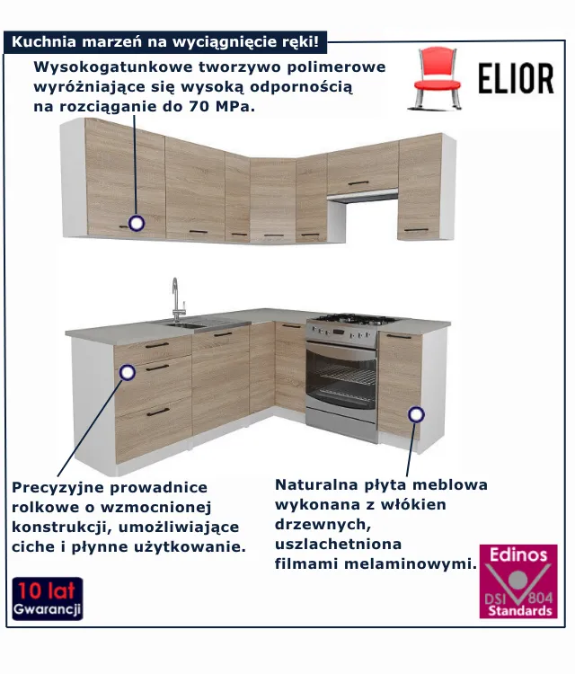 Dotyczy: Zestaw mebli kuchennych narożnych dąb sonoma + biały - Hemi