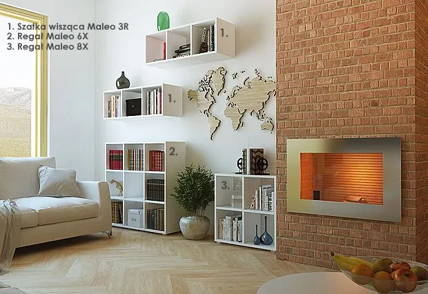 - Zawartość zestawu oraz wymiary mebli: 2 szt. półka wisząca Maleo 3R (wysokość: 33 cm, szerokość: 105 cm, głębokość: 33 cm), 1 szt. regał kwadrat Maleo 6X (wysokość: 107 cm, szerokość: 105 cm, głębokość: 33 cm), 1 szt. regał kwadrat Maleo 8X (wysokość: 66 cm, szerokość: 64 cm, głębokość: 33 cm). Po kliknięciu w powyższe linki, zostaniesz przeniesiony do ofert z konkretnymi elementami zestawu.
