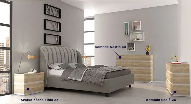 Designerski zestaw mebli Moso wyróżnia się nie tylko swoją praktyczną formą i eleganckim kształtem, ale także zastosowaniem materiałów najlepszej jakości. To dlatego cieszy się powodzeniem wśród osób lubiących nowatorskie rozwiązania. Meble wykonane zostały z laminowanej płyty meblowej uszlachetnionej cienkimi filmami melaminowymi. Posiada także specjalne włókna ułożone różnokierunkowo o strukturze sinusoidalnej, co zapewnia nadanie jej cech jakościowych oraz wytrzymałościowych. Dla zwiększenia wytrzymałości i trwałości mebla, obrzeża komód wykończono odpornym na uszkodzenia mechaniczne tworzywem PCV. Szuflady na prowadnicach rolkowych są gwarancją wygodnego i przede wszystkim bezpiecznego użytkowania. Bezuchwytowe fronty podkreślają nowoczesny i modernistyczny styl mebli. Szuflady są wyjątkowo praktyczne i zapewniają komfortowe przechowywanie nie tylko ubrań czy dodatków. Stonowana kolorystyka i prosta, współczesna forma sprawiają, że komplet Moso doskonale sprawdza się we wnętrzach urządzonych zarówno w stylu skandynawskim, jak też minimalistycznym czy nowoczesnym. Świetnie nadaje się także do wnętrz dziecięcych czy młodzieżowych. Stwórz w swoim domu niepowtarzalny i ciepły klimat z zestawem mebli marki Elior!